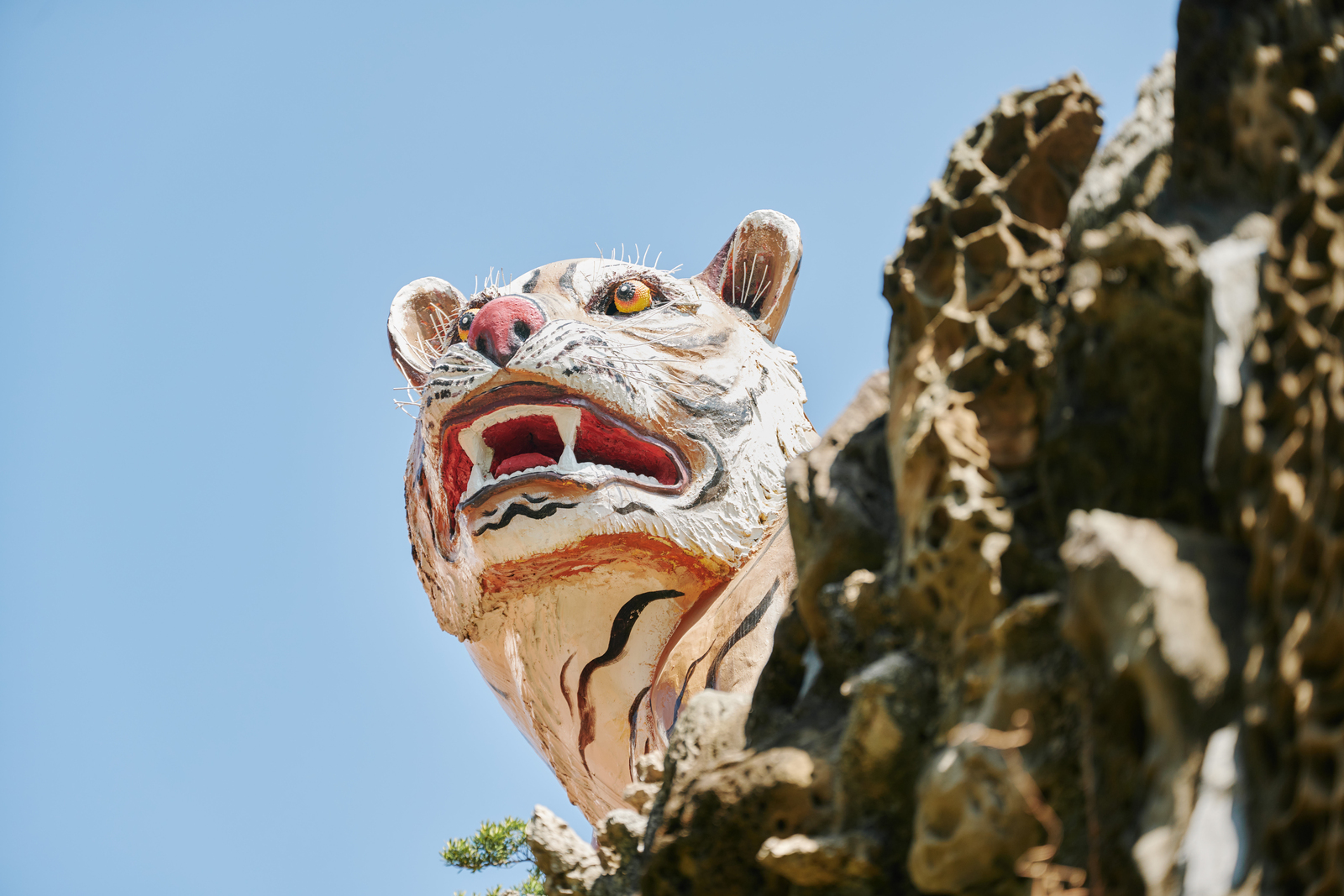 清水紫雲巖是台中最大的觀音廟,也是清水的信仰中心,因為籤詩靈驗,不少台中人會專程來廟裡參拜求籤,聽到第一站是清水紫雲巖的 High Loc & Henry,自然不會放過祈福機會, 兩人拿著香認真拜完三層樓,也一道賞廟宇雕塑和彩繪。 HereNow 強力推薦紫雲巖的後花園,有小橋流水、假山奇石,還有大型龍虎坐鎮左右,B級感十足,為了這裡少看一團表演都沒關係(浮誇)。