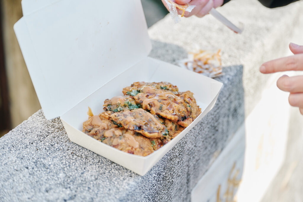 下午一開賣就出現排隊人潮的白燒炸粿,是當地人公認的下午茶美食。炸得金黃酥脆的蚵炸,入口意外清爽,搭配辣醬提味口感更升級。這種東西放涼了不好吃,排到立刻在一旁開嗑的西屯純愛組,直說好燙但從未停下筷子,經過看到人潮很多不要怕,排就對了,吃完你不會後悔的!