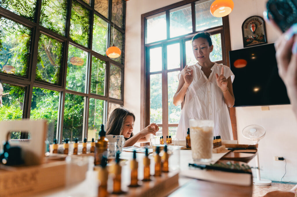 午後伴隨南國雷陣雨,車子蜿蜒駛上山路,心情也隱入山的靜謐。我們在雨霧中抵達民宿「島上蘇西」,展開一場關於香氣與靈魂的旅程——《37靈魂調香》。調香師Kellie以「星盤與香氣」為引,帶領我們輕觸回憶的氣味,溫柔探問此刻靈魂的狀態,創造出一瓶屬於個人生命故事的氣味。