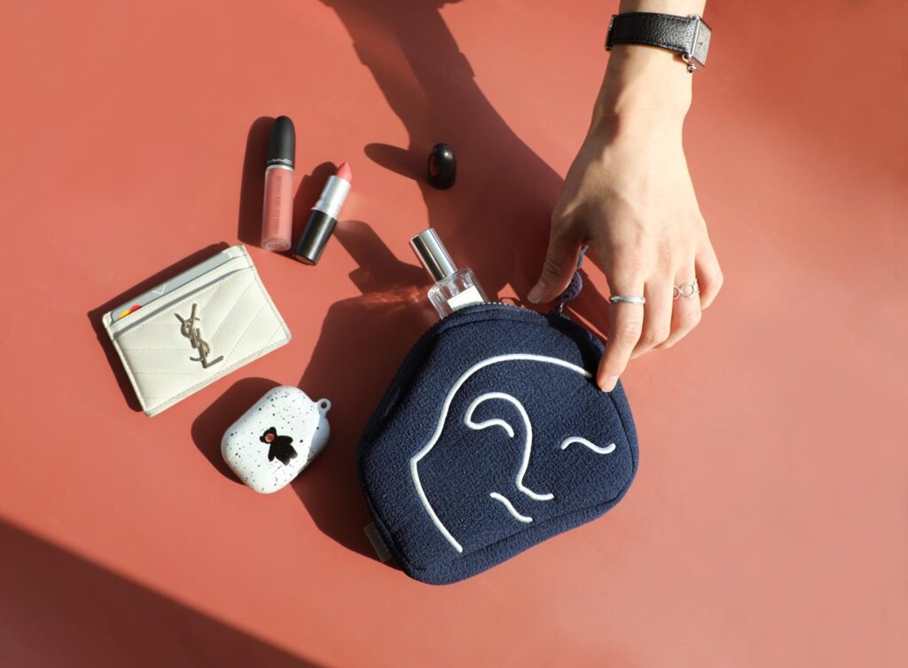 收納包形狀維持「新羅的微笑」缺損的輪廓,以立體刺繡細膩呈現其明朗溫暖的笑容。布料觸感柔軟蓬鬆且輕巧,為保持立體感,內部加入結實的裡布與填充棉,提升整體耐用度。尺寸適合收納化妝品、女性隨身用品等日常小物,兼具實用與美感。