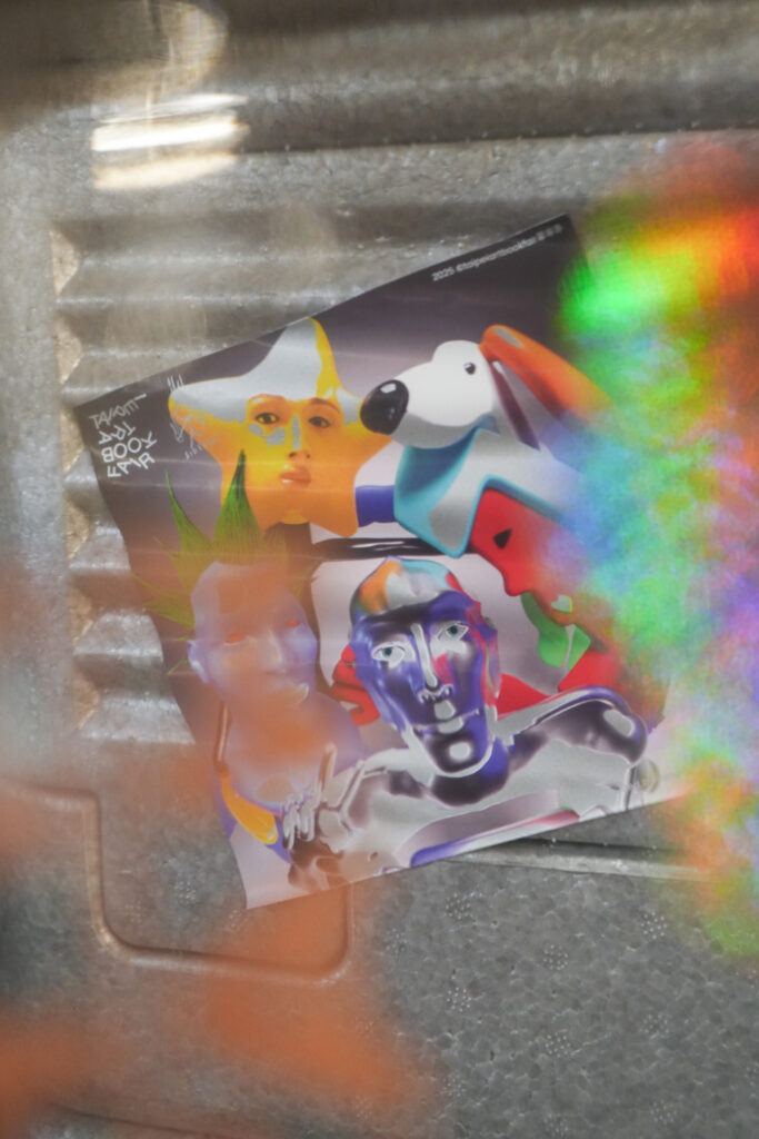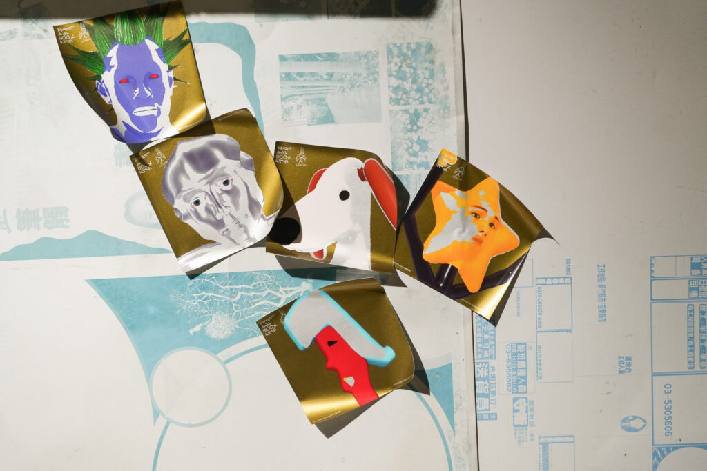 不僅在活動場域中實踐創意,草率季也作為創作者在紙上實驗。本次除了主視覺海報與集結當屆參展者的作品型錄《草率簿》,更推出限量主視覺角色貼紙,特別選用 FUJIFILM Revoria Press PC1120 六色數位印刷機,以超越四色印刷的寬廣色域,挑戰在貼紙紙材上加入金、銀兩個特殊色,讓光澤隨著觀看角度反射變化,突破傳統的印刷框架,釋放色彩上的創作自由。現在打開草率季的友好店家地圖,就能到各個店家搜集五個軟pow pow的角色貼紙!