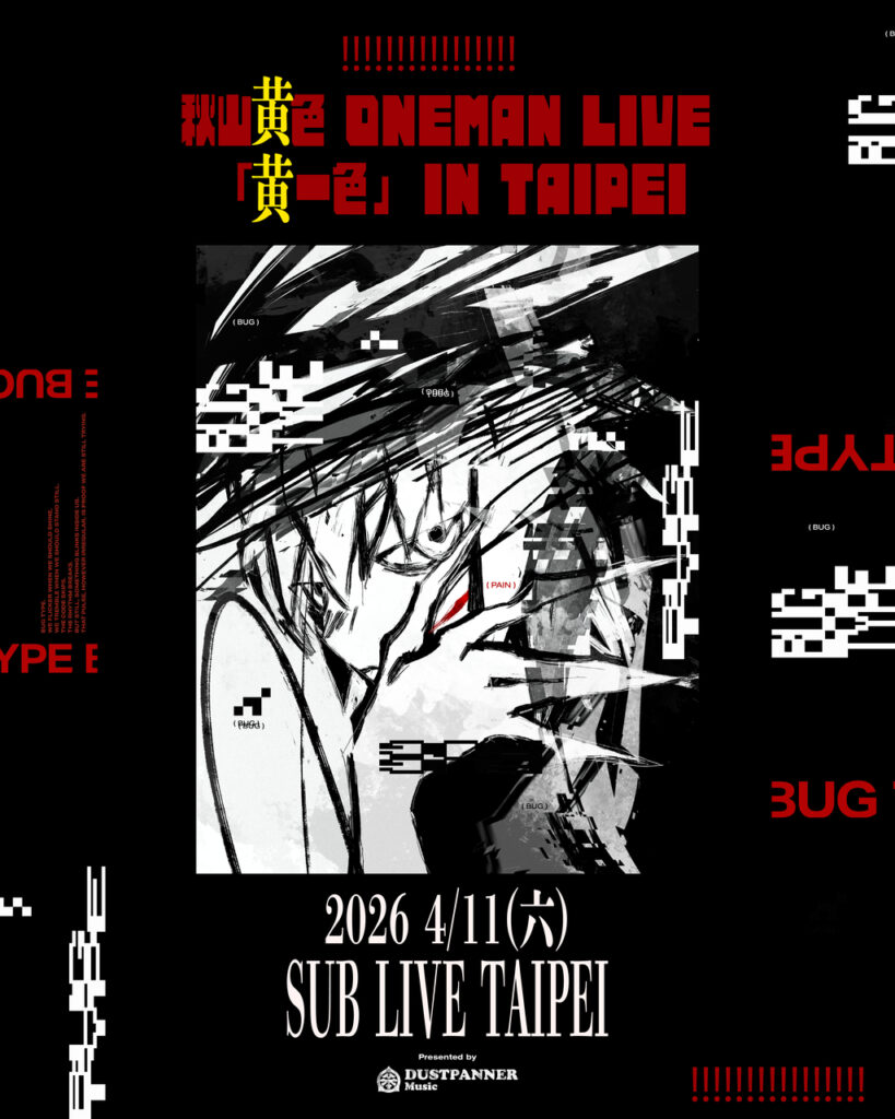 在今年即將滿三十歲的他,也首度於海外(台灣)舉辦個人專場演出。2026年4月11日,他將站上台北SUB LIVE,帶來「秋山黄色ONEMAN LIVE:『黄一色』IN TAIPEI」。專場名稱取自麻將術語「清一色」,象徵一場毫無保留、只屬於秋山黄色本人的完整演出;主視覺亦由他親自參與設計,延續作品一貫鮮明而純粹的個人美學。