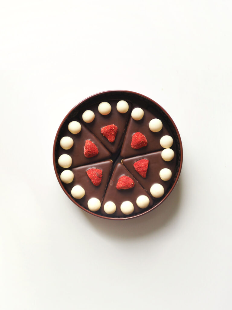 「好可愛。」打開蓋子後周圍朋友都忍不住尖叫。乍看以為是草莓巧克蛋糕,卻是巧克力餅乾堆疊而成,可愛得就像被邱比特的箭擊中心房。第一層為巧克力餅乾搭配草莓凍乾,下層則是原味與草莓口味餅乾。除了定番的巧克力口味外,不定期推出期間限定,像是開心果口味等都讓人很期待。從可愛造型到甜度剛好的巧克力,是一款少女都無法抗拒的鐵盒餅乾。